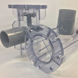 - アクリル製の攪拌実験装置です。左右の曲面部分に苦労しました。